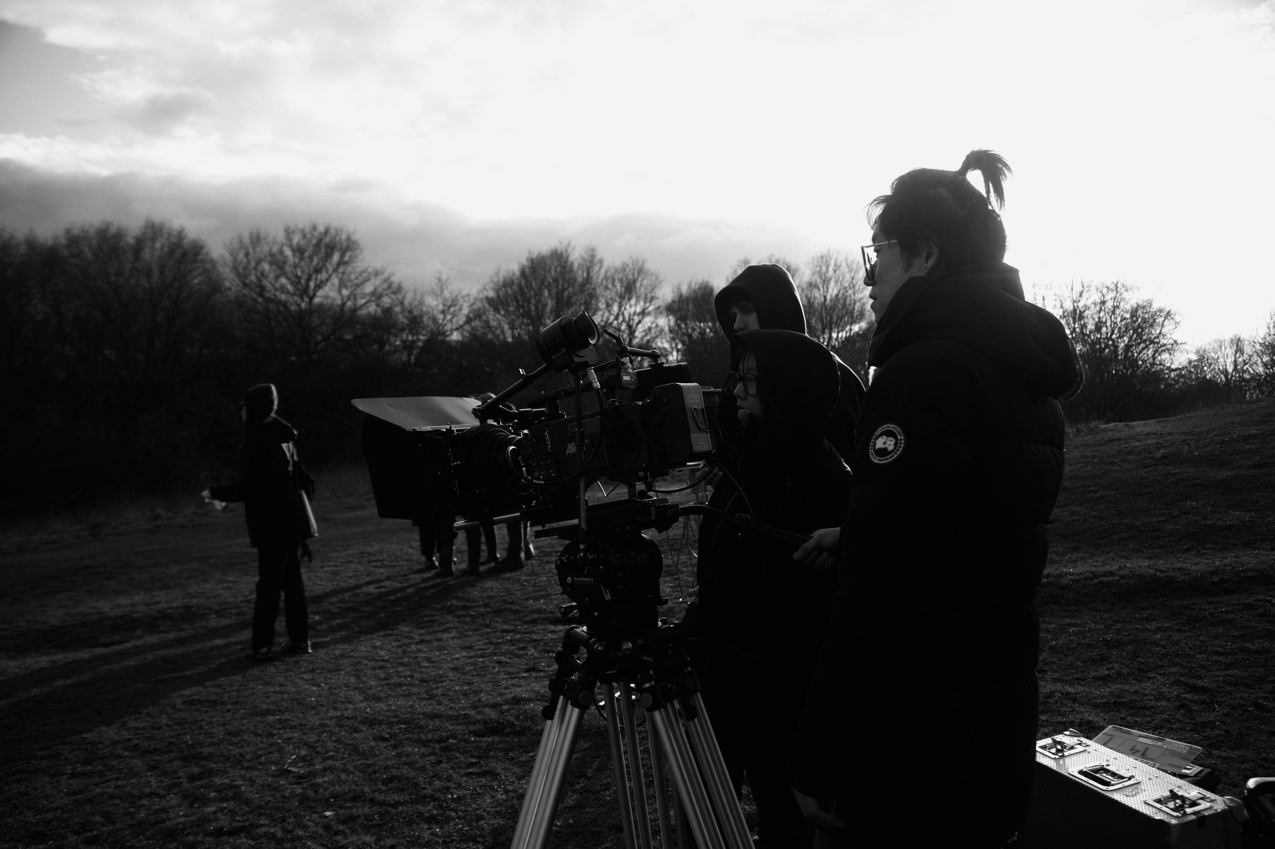 I photographed behind the scenes for an MA film student's short film. I shot on black and white film to match the visual tone of the production, which was also styled for B&W.